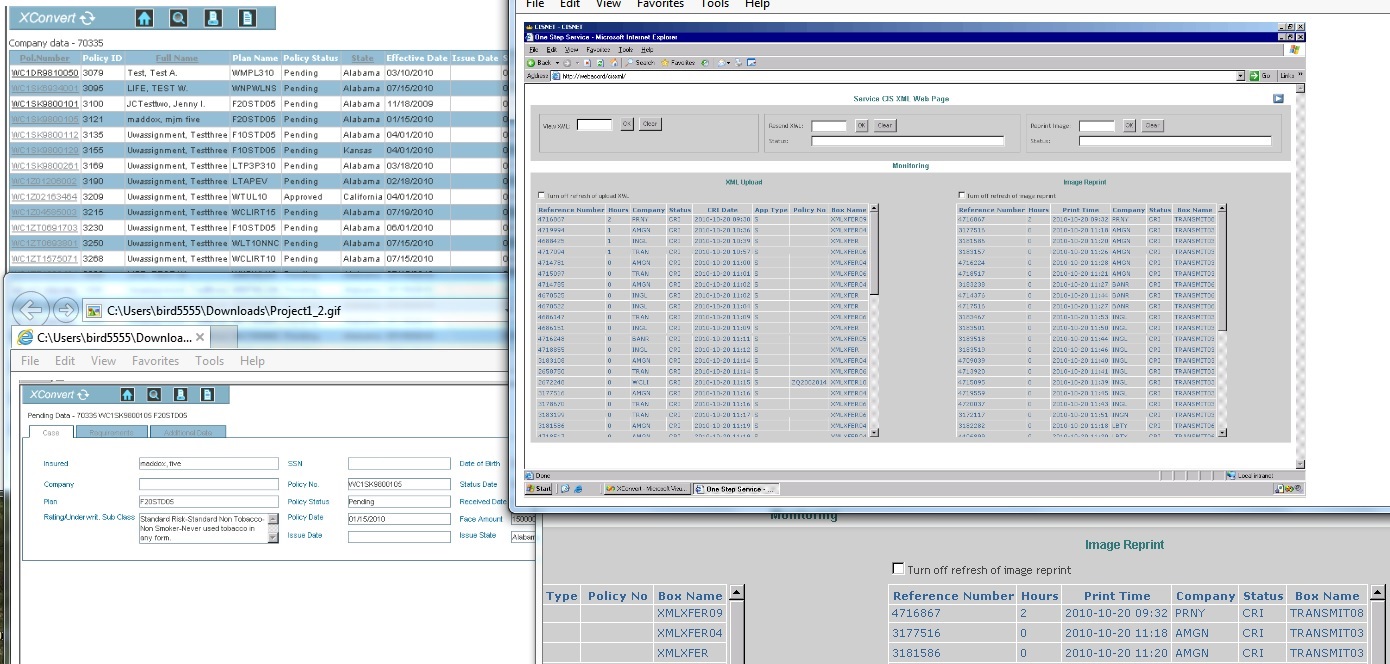 Developed client application using Altova’s XMLSpy API to validate XML files against Acord XML standard schemas.